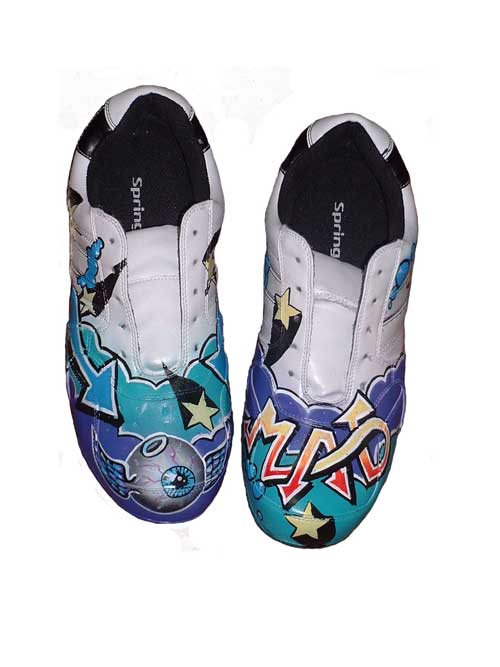 - Once the art / stencils are ready, painting this footwear can take at least one hour to a few full days depending on the final result required, HD movie quality for example.