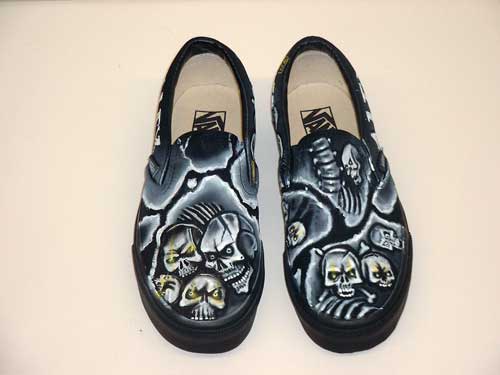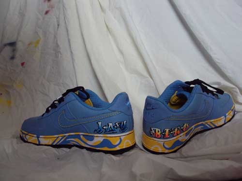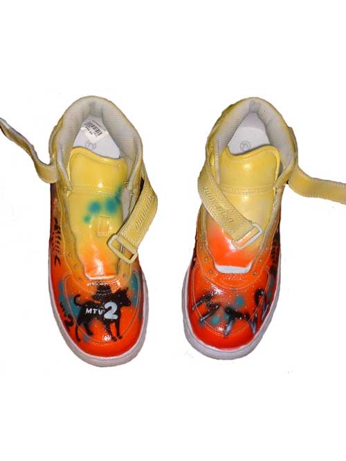 - Image #1 was a commission from MTV Canada, for graffitti style airbrushed shoes which required preparation/masking, custom stencils and a gloss finish. (Client provides the footwear)